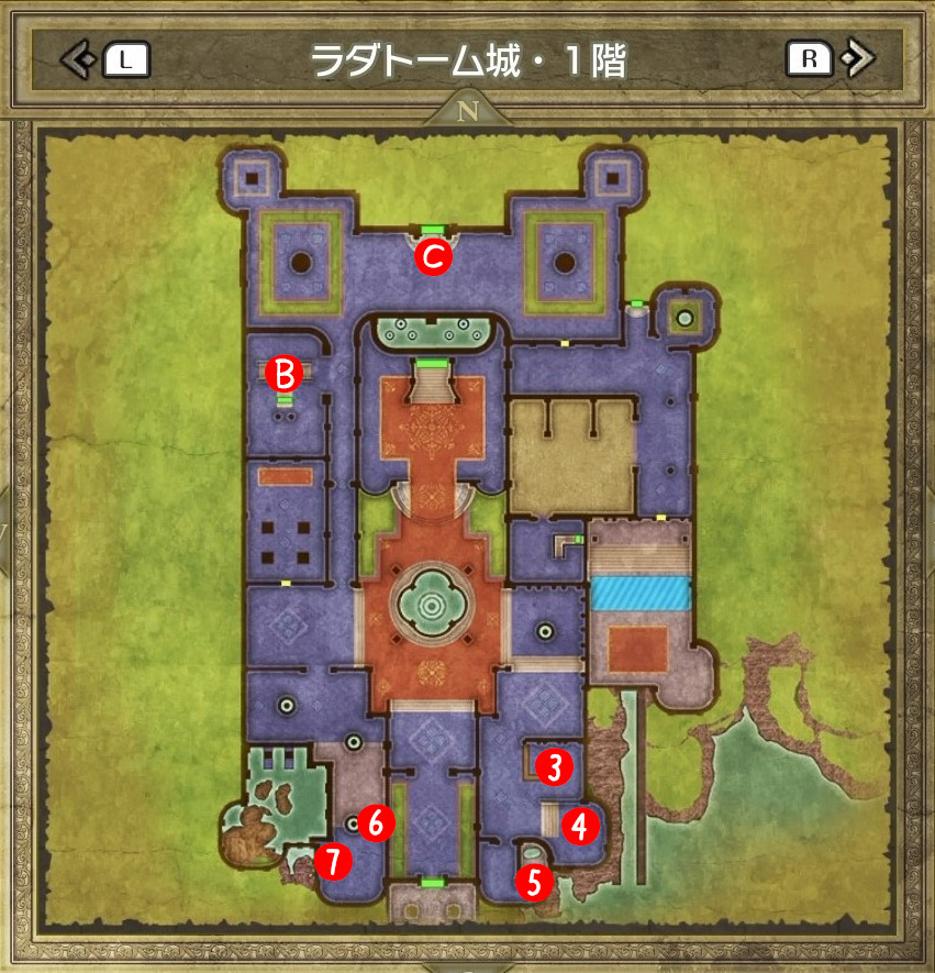 アイテムを回収したら「ラダトーム城・2階」から1階へ下りる