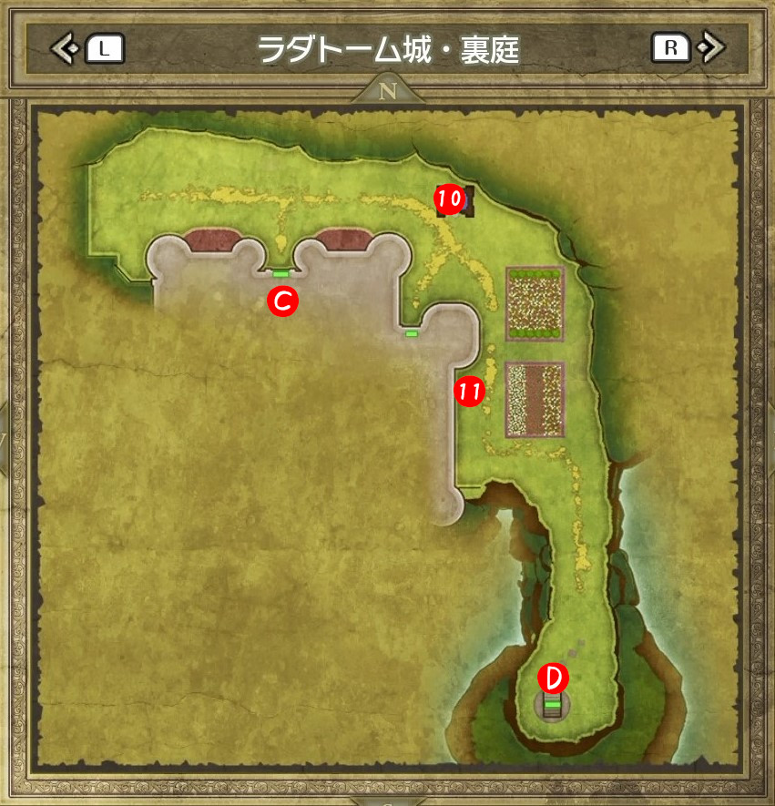その後に「C」から「ラダトーム城・裏庭」へ出る