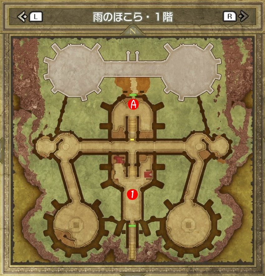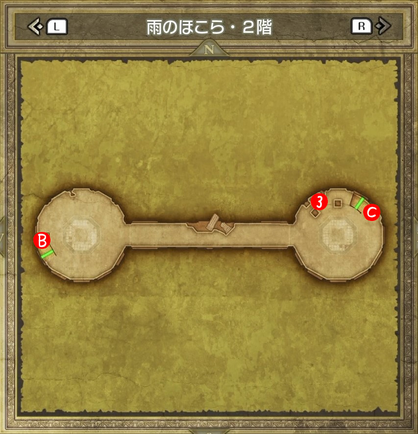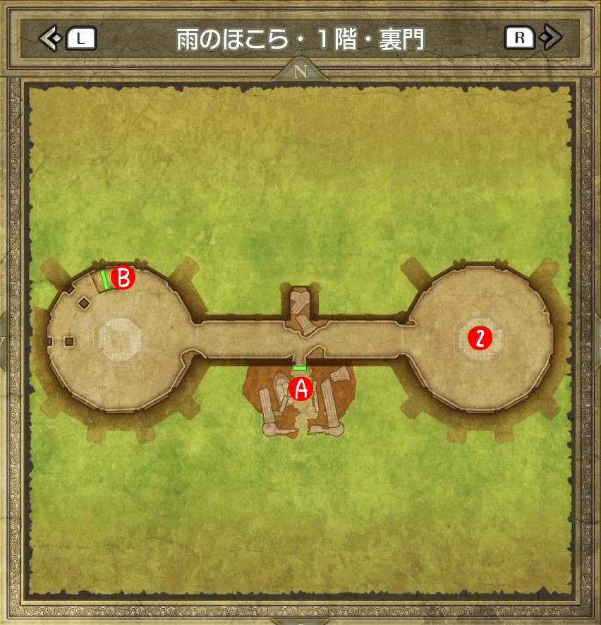 | A | 【ひみつの場所】 北東のツボから「はやてのベスト」 ツボから西の草むらに「まよけのすず」 |