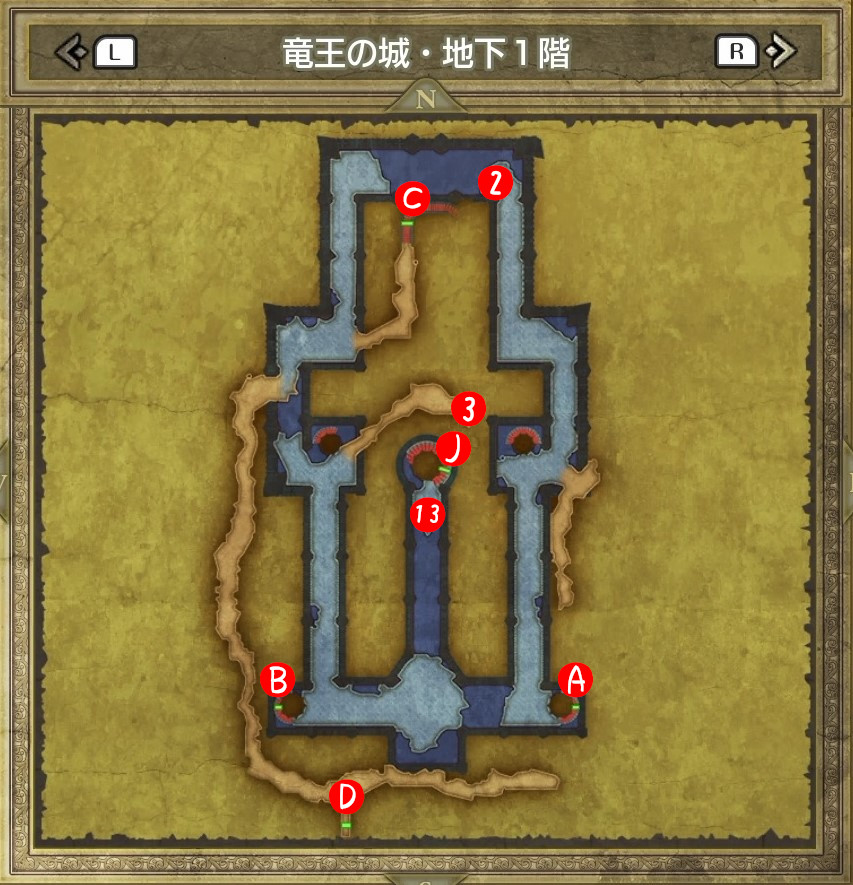| 17 | 宝箱から「ふしぎなきのみ」「呪いのベルト」 宝箱から「やくそう」「キメラのつばさ」「500ゴールド」 宝箱から「420ゴールド」「いのりのゆびわ」「ミミック」「命の石」 |