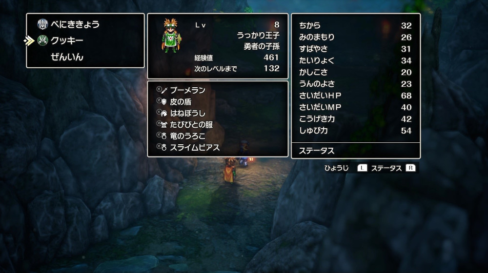 | HP | MP | 攻撃力 | 守備力 | すばやさ | 経験値 | ゴールド | 宝 |