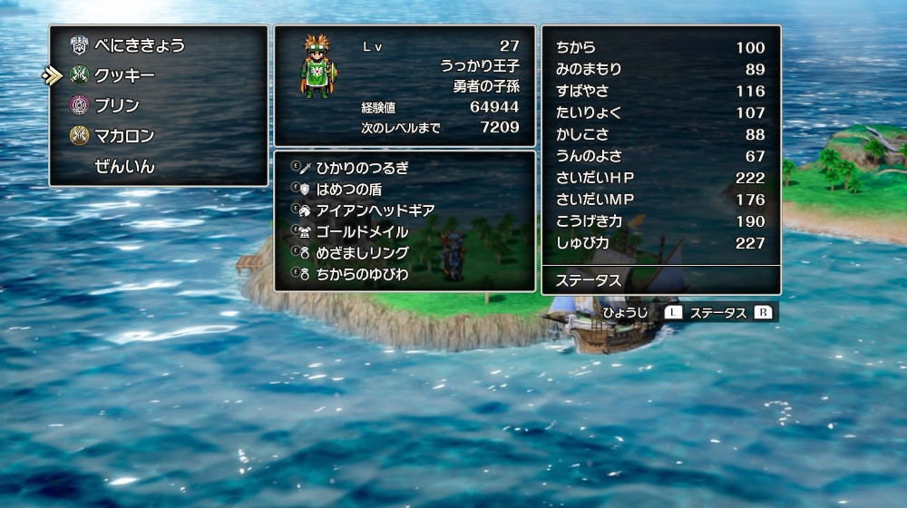 | HP | MP | 攻撃力 | 守備力 | すばやさ | 経験値 | ゴールド | 宝 |