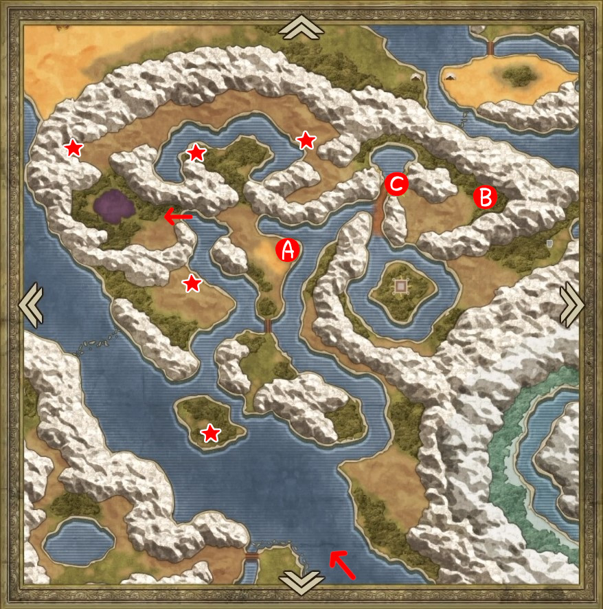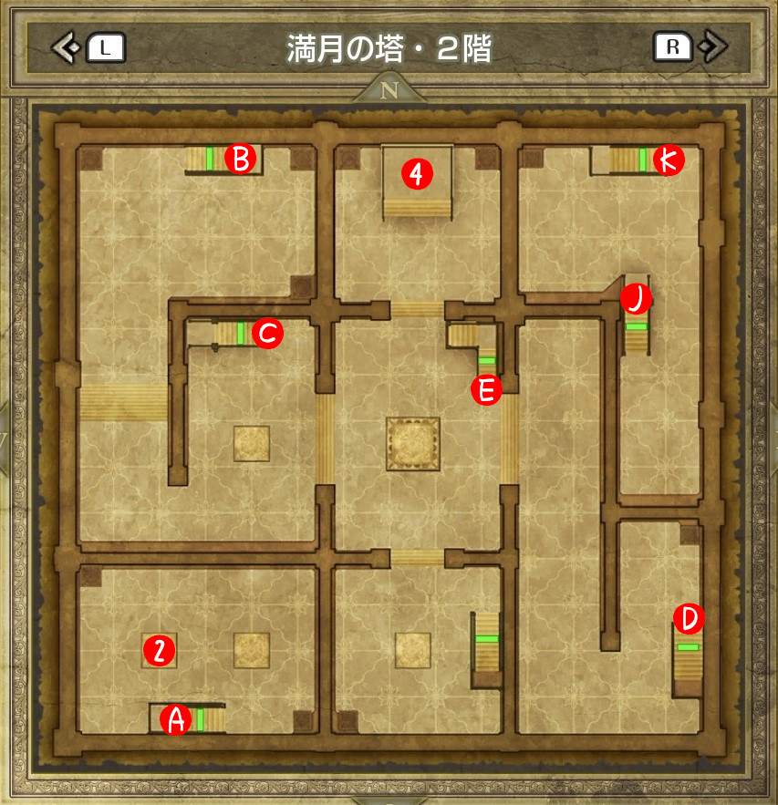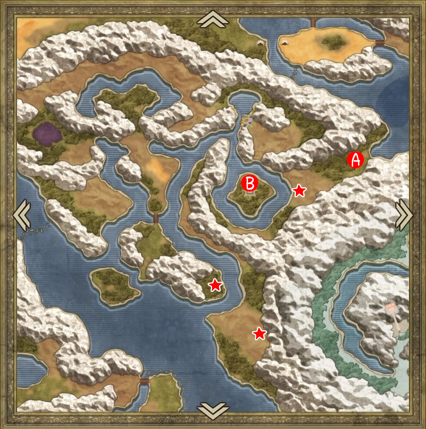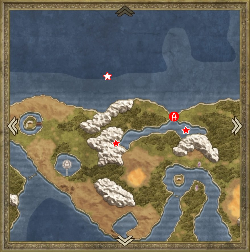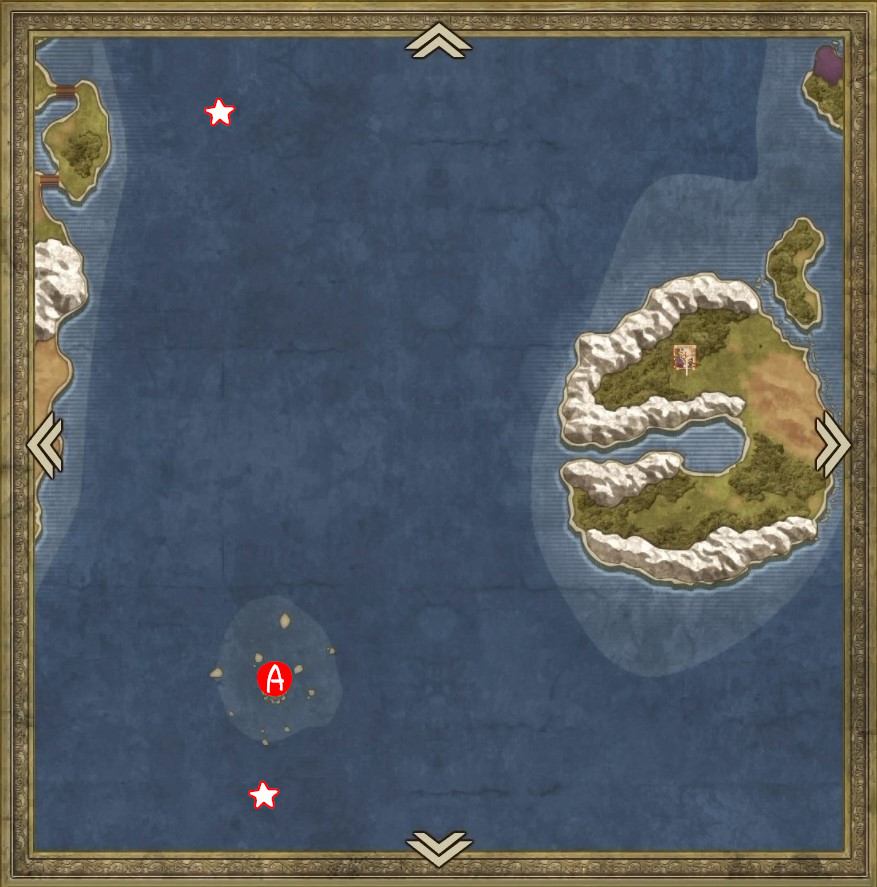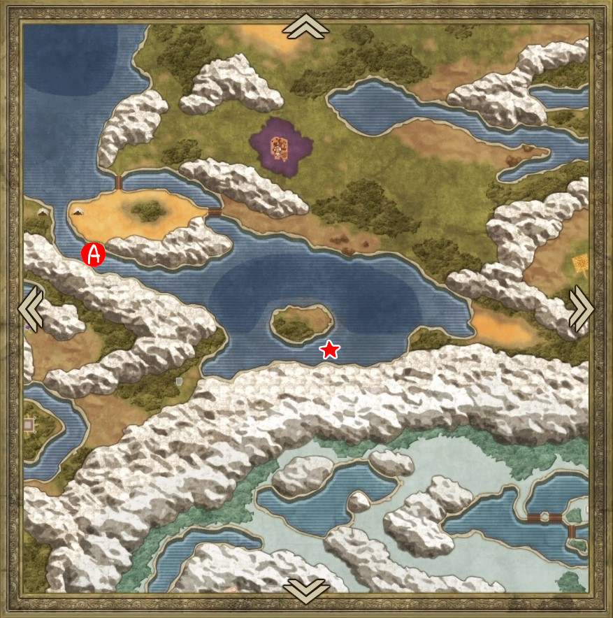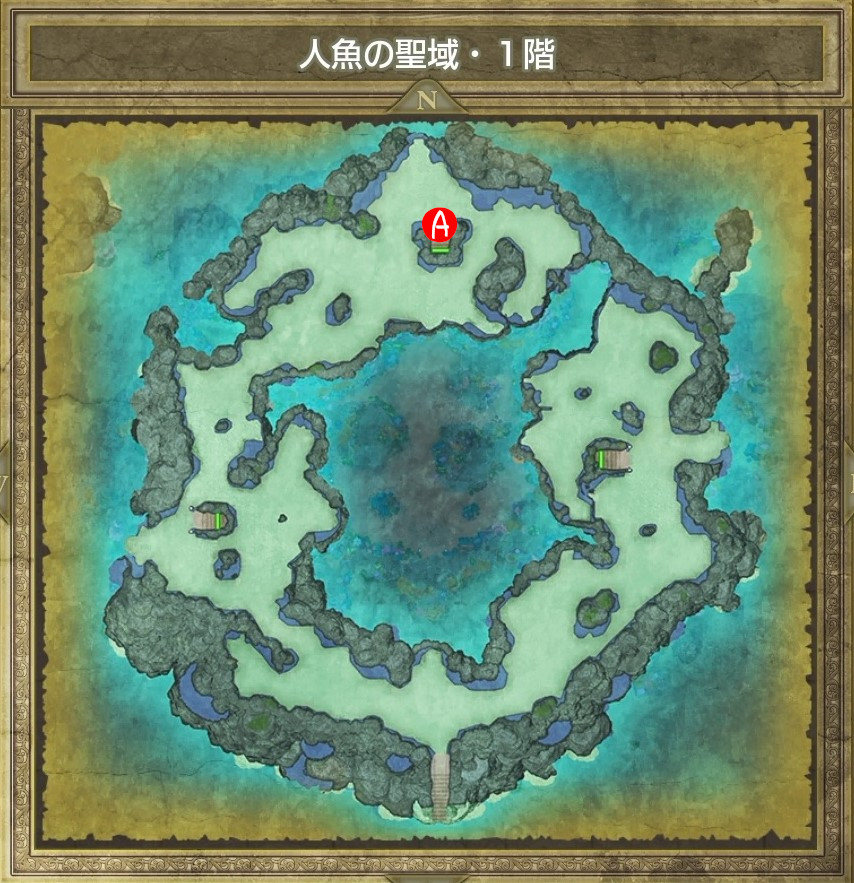 | A | 【ひみつの場所】 南側のタルから「たびびとの服」 北西のタルから「ちいさなメダル」 |