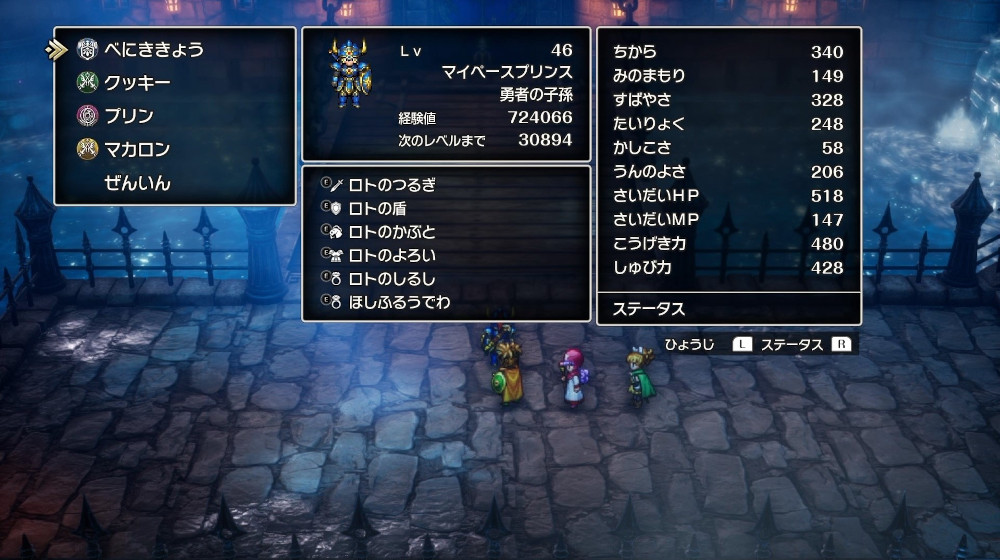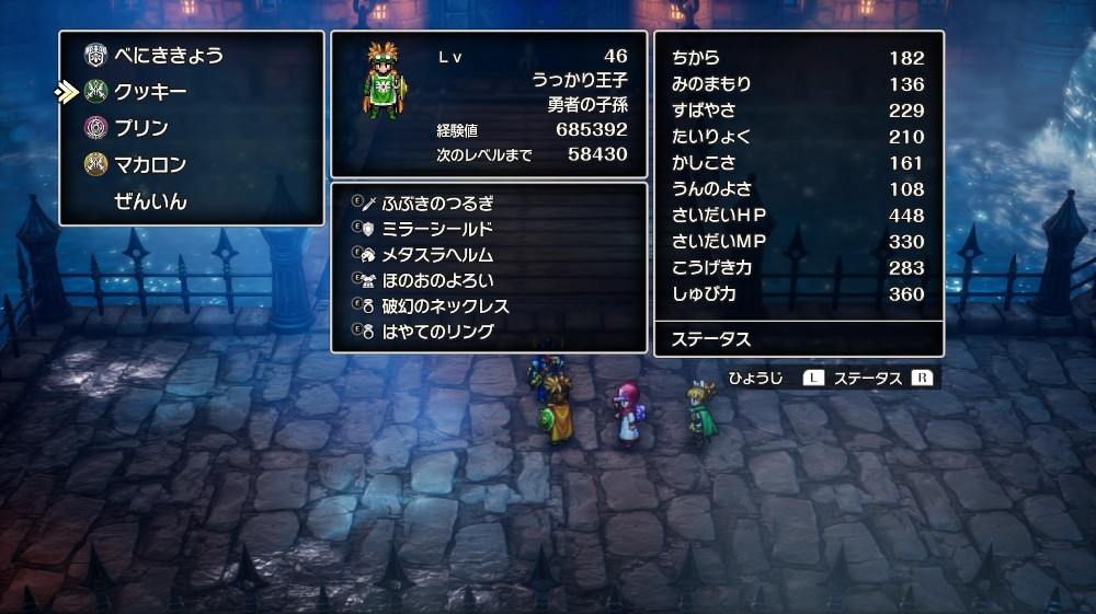また、ローレシア王子が「バイキルト」と「おうえん」を付与した状態で、「せいしんとういつ」から「ぶんまわし」の超絶技「たたきつける」攻撃をするのが難しい場合、「におうだち」でタンク役にまわるといい