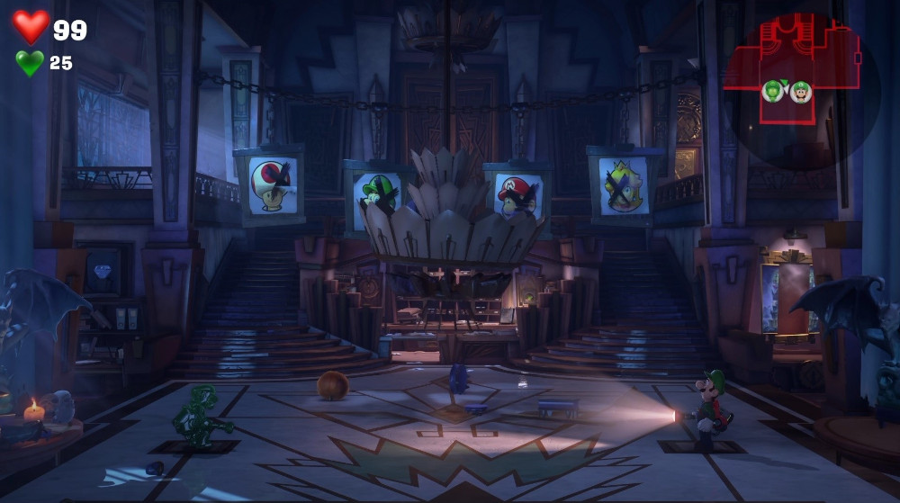 ルイージとグーイージそれぞれがシャンデリアを吸い込むとお金と「黄の宝石」が出現するので入手できる