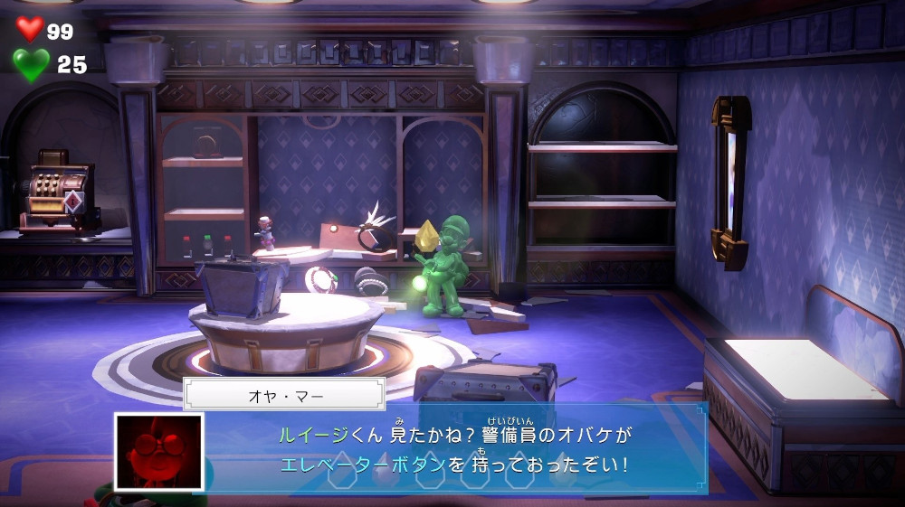 店の中心にあるトランクケースにキューバンを当てて、正面奥のガラスに向かって振り回すとガラスを割って「黄の宝石」を回収できる