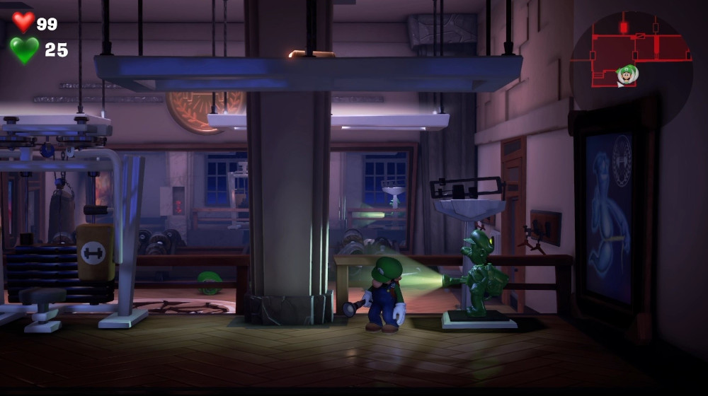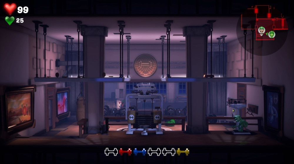 グーイージが体重計に乗った状態で、ルイージで吸い込めば「赤の宝石」を入手できる