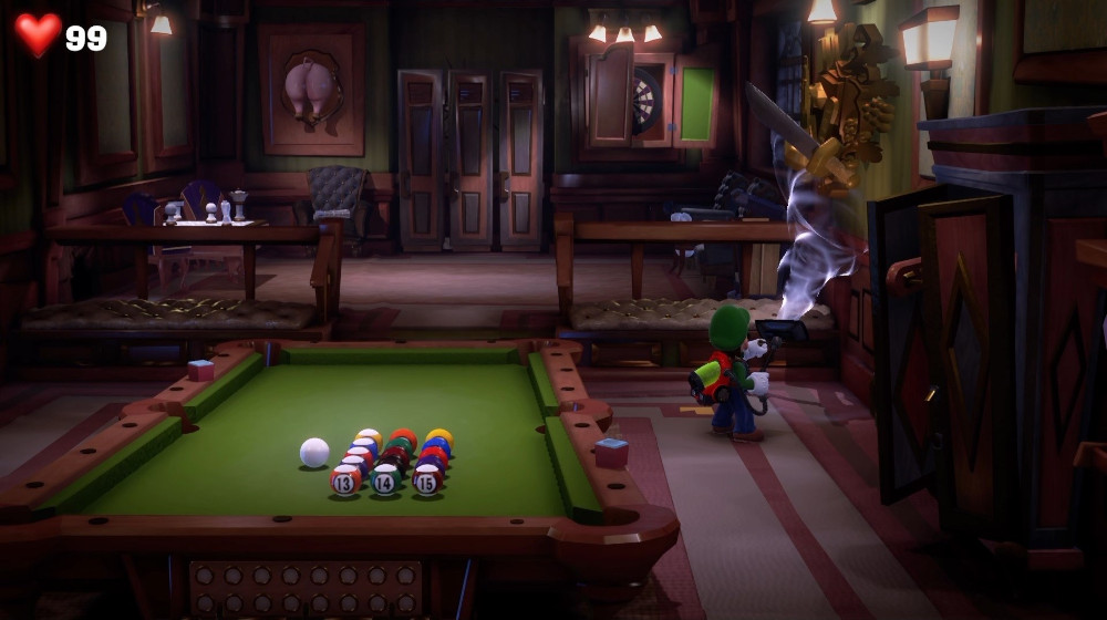 ビリヤード台横の鎧を吸い込むと「剣」が手に入る