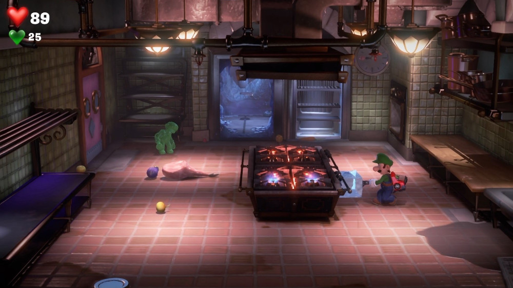 オバケを倒したらそのまま右の扉から調理室へ移動する