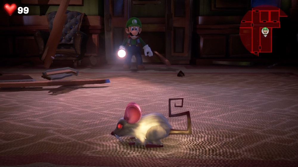 倒しても別のネズミがボタンを呑み込んで、今度は娯楽室へ逃げるので追いかける