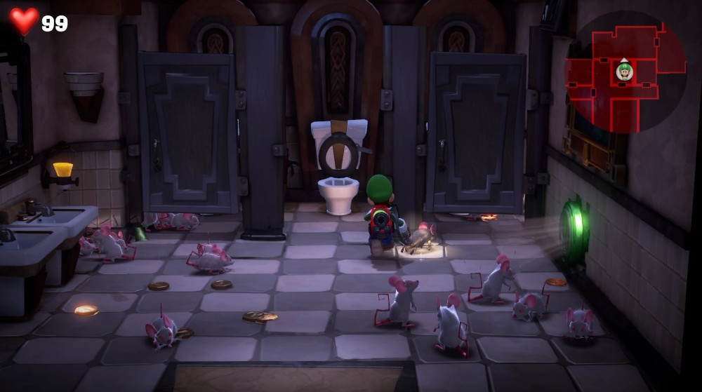 真ん中の個室をキューバンで破壊するとネズミが多数出てくるが、本命のスイッチを呑み込んだネズミを倒せば他はどこかへ行く