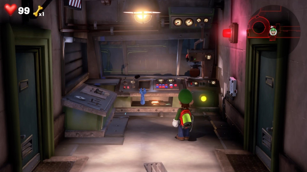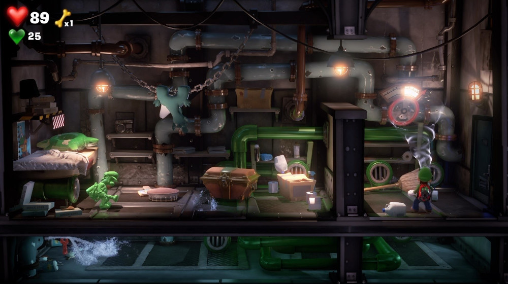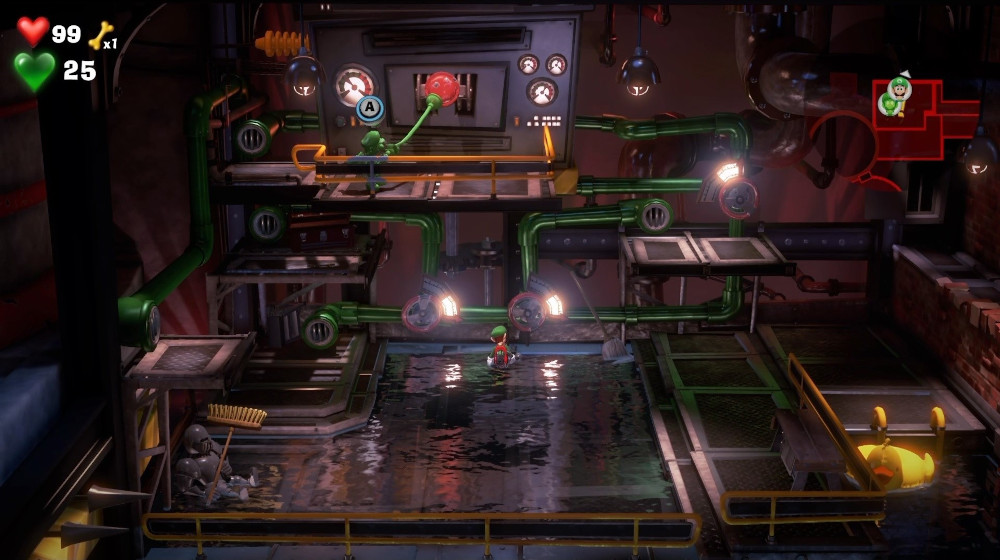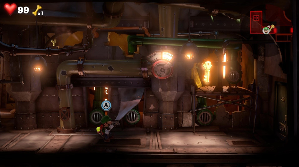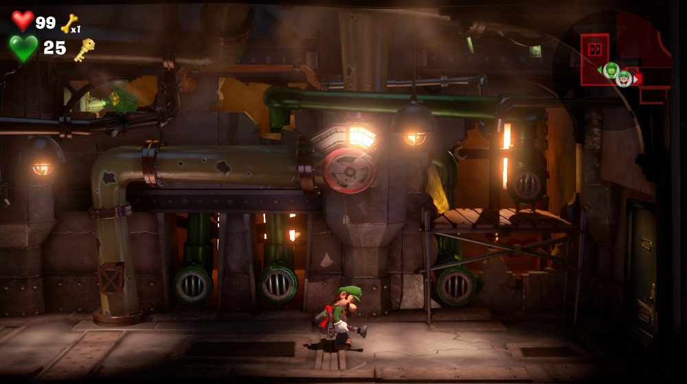 グーイージで左の配管に入ると遮られている左側の部屋に移動できる