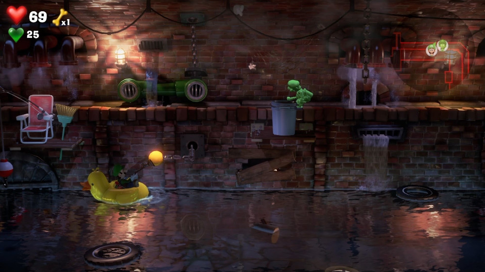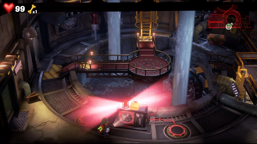 水流があり、門にはトゲがあるので、ルイージを放置しすぎるとダメージを受ける