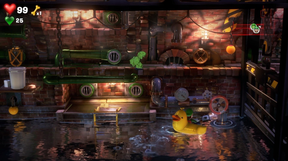 ルイージでバルブに空気を送り込んで逆回転させると、「赤の宝石」を入手できる