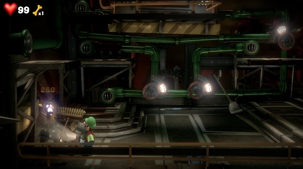 左の配管のとなりの布を吸い込むと別の配管が現れるので、グーイージで中に入ると右側の「カギ」を手に入れることができる