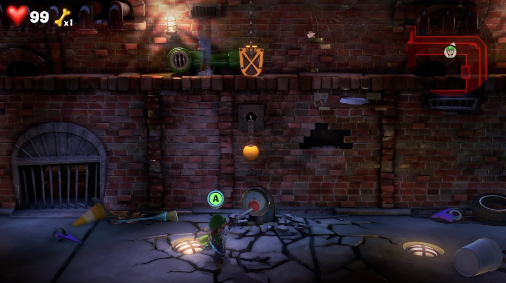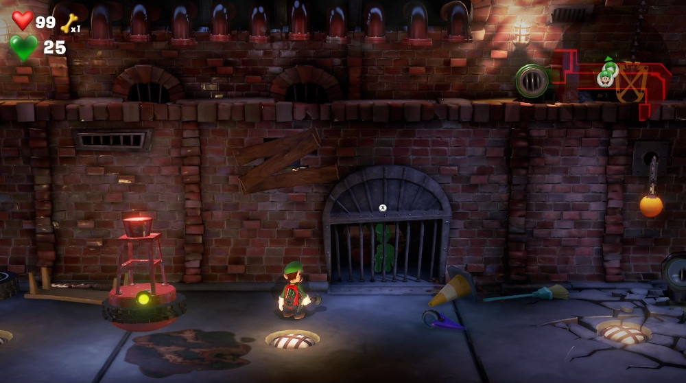 その間にグーイージが右へ移動して球を吸い込むと鉄門が開くので、ルイージは門をくぐる