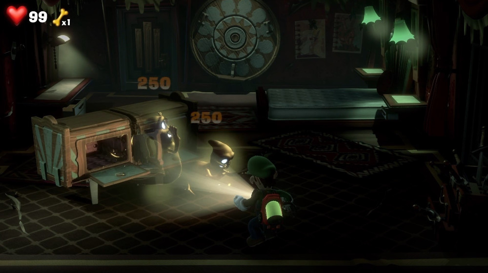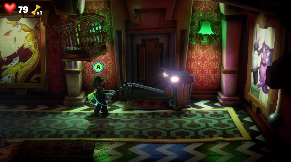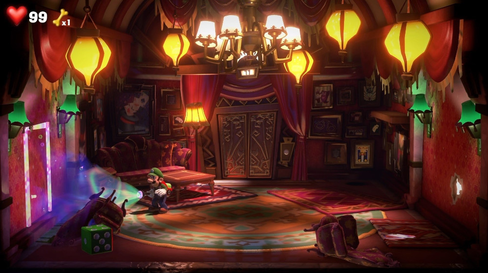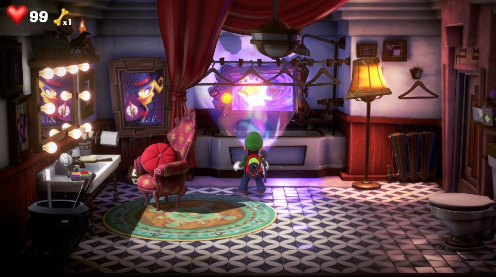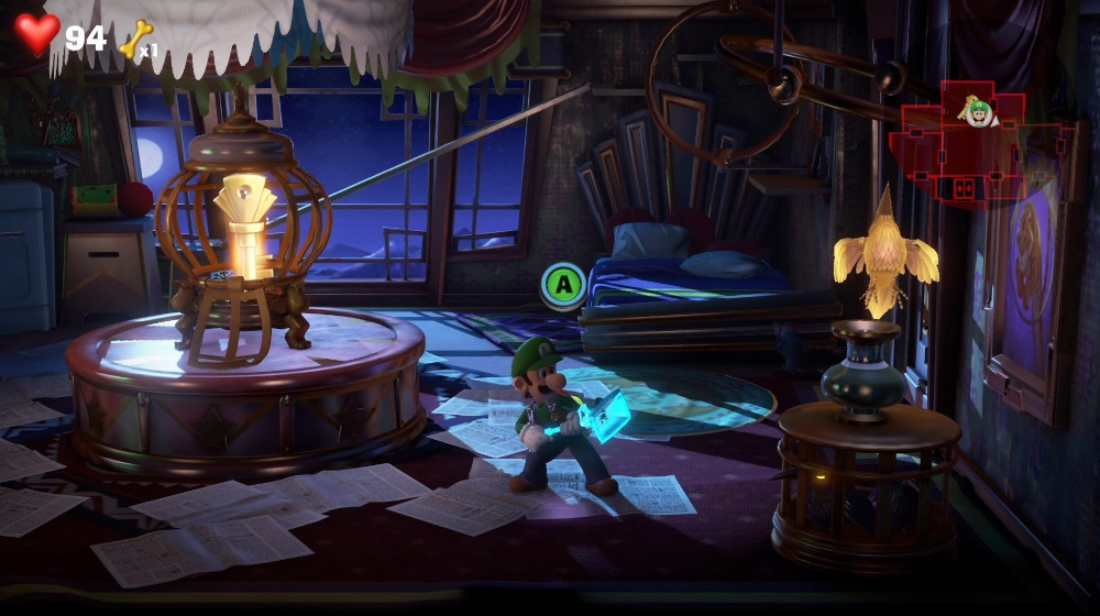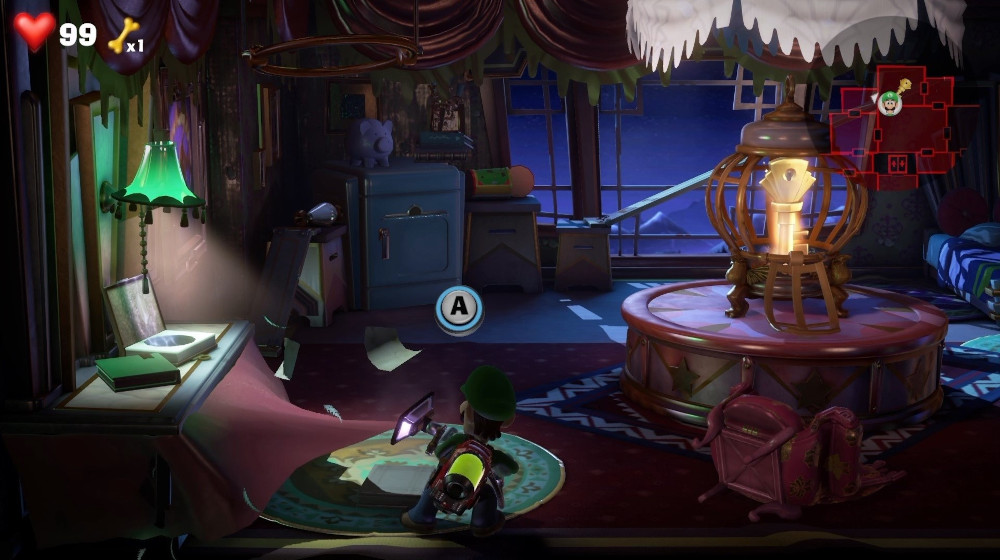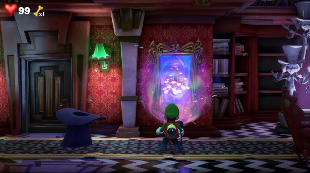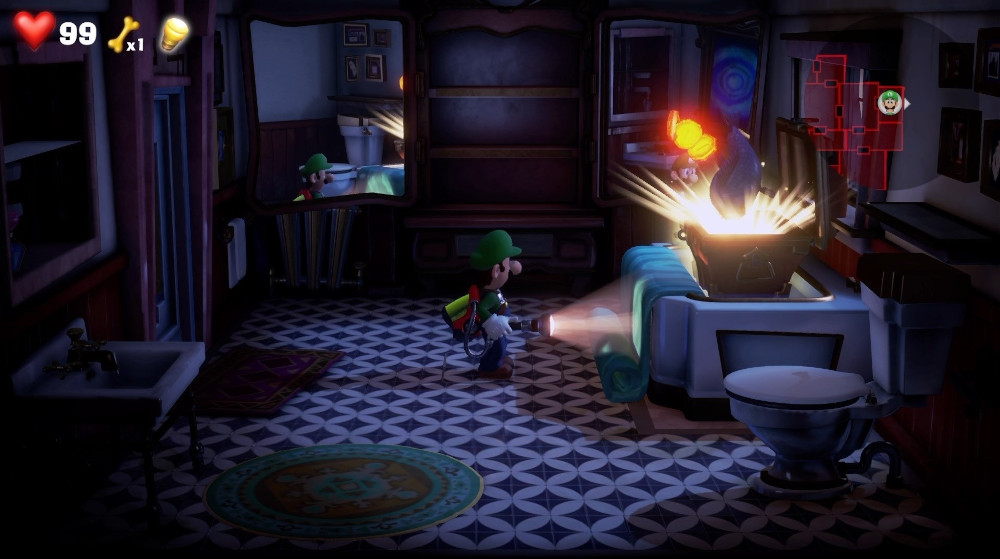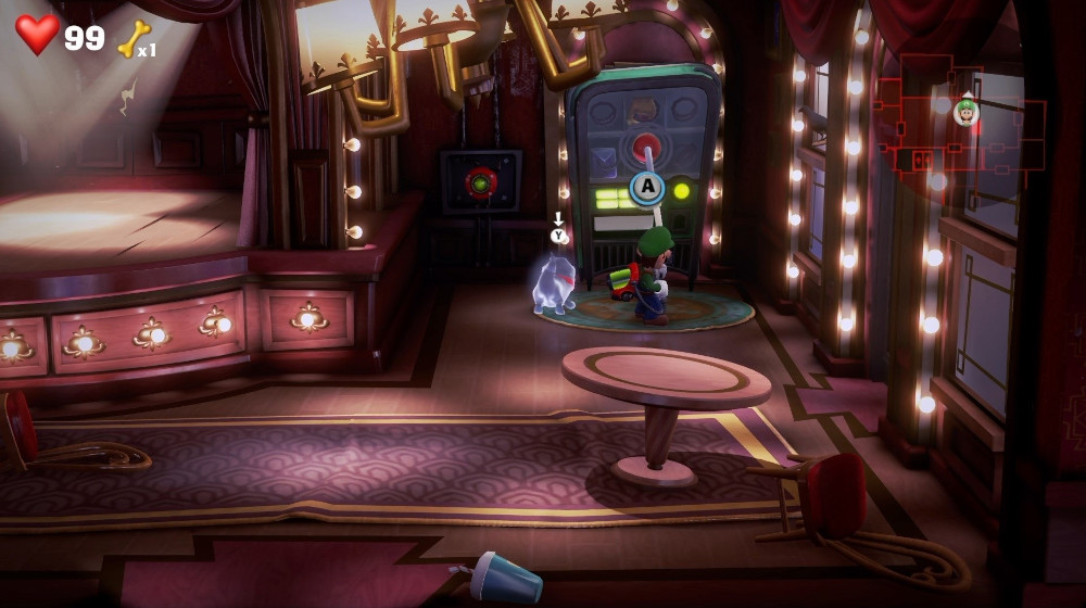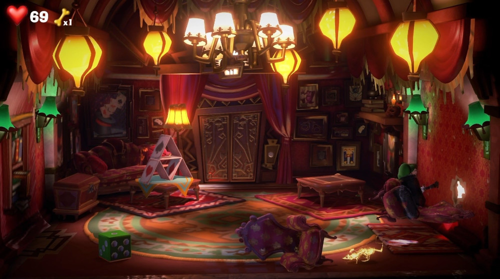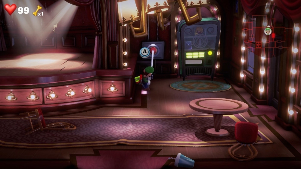 ルイージが吸い込んだ状態のまま、グーイージで緑のランプにフラッシュを当てると「緑の宝石」を入手しやすい