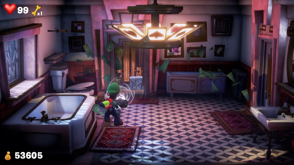 絨毯に空気を送るとバスタブの中から宝箱が出現してお金を入手できる