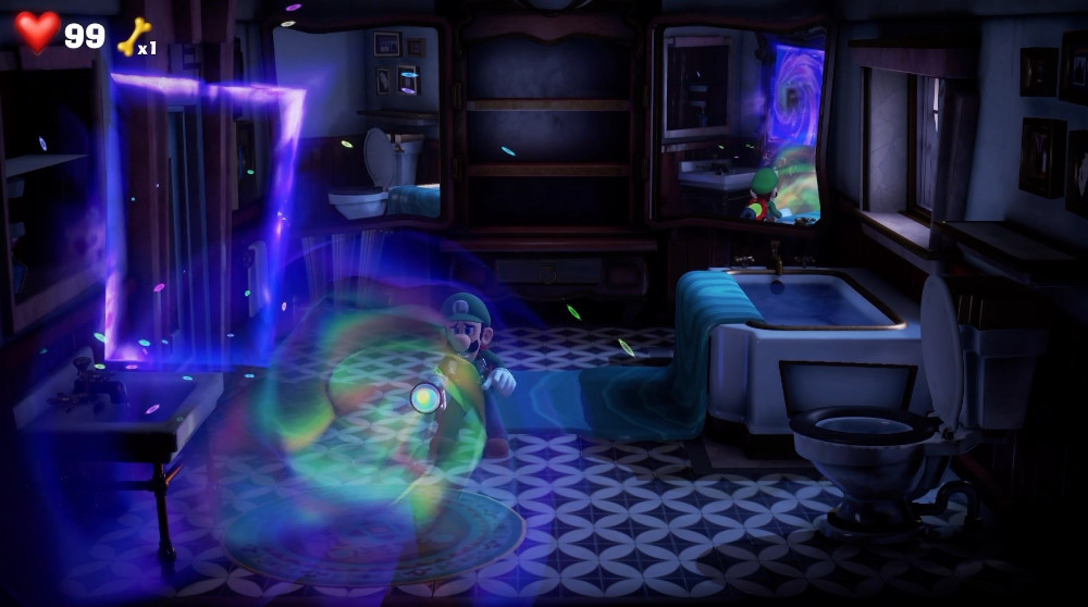 お金を回収したら、右の扉から「ミラーバスルーム」へ移動する