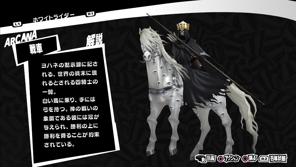 この記事ではペルソナ5Rのペルソナ「ホワイトライダー」の入手方法や性能について紹介しています