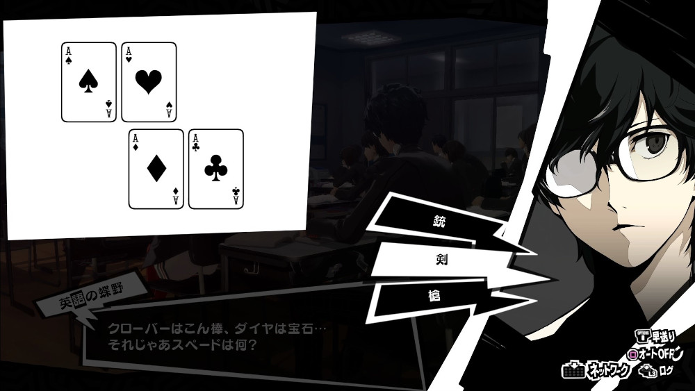 | クローバーはこん棒、ダイヤは宝石…それじゃあスペードは何? | 銃 |